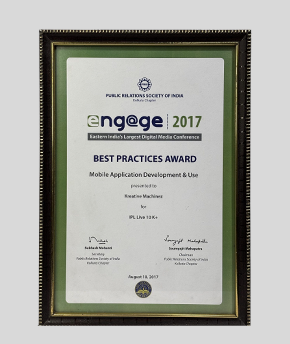 2017 Won Best Practices award at "Engage 2017" for IPL 10k+.