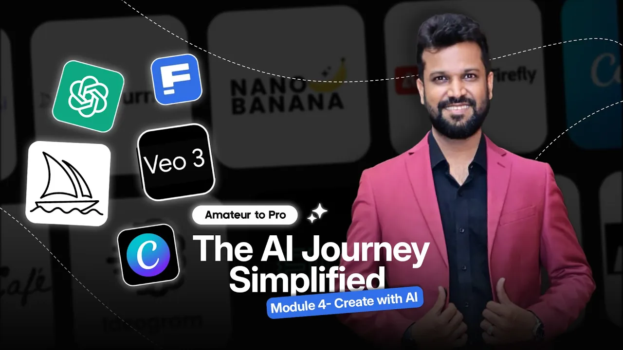 Unlock the creative side of Artificial Intelligence. Learn how AI can design logos, generate stunning images, edit photos, produce videos, create 3D models, compose music, and even generate realistic voices. This module transforms AI into your personal creative partner, helping you bring ideas to life in ways that were once limited to design or production experts.